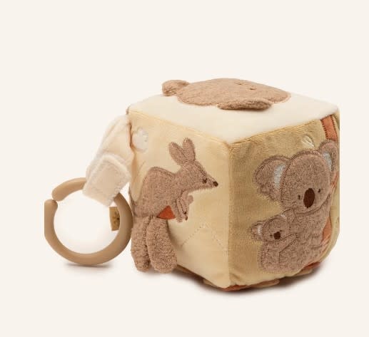 Deze activiteitenkubus uit het Kangaroots thema biedt je kleintje urenlang speelplezier. Met lieve dierenvriendjes zoals een koala, kangoeroe en beertje én interactieve details zoals een spiegeltje, een kangoeroe in een buideltje, knisperende stofjes, belletjes en speelse touwtjes, is er altijd iets nieuws te ontdekken. De kubus stimuleert de zintuigen en ondersteunt de ontwikkeling van motorische vaardigheden. Perfect om mee te spelen in de box!