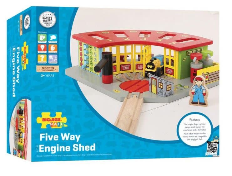Bigjigs Houten Rails - Luxe Remise voor 5 Treinen