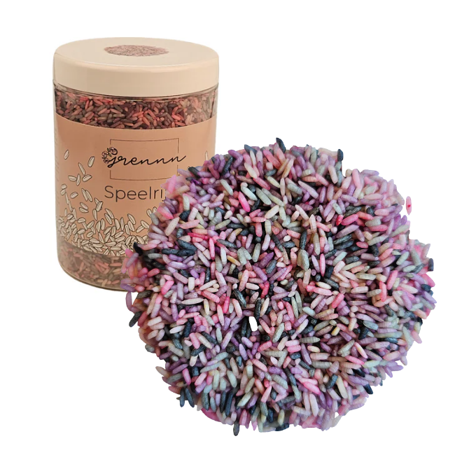Kinderen zullen het spelen met sensomotorische gekleurde speelrijst geweldig vinden. Het is het ideale speelgoed voor kinderen om te ontdekken. Spelen met speelrijst helpt prikkels te verwerken en te ontspannen.