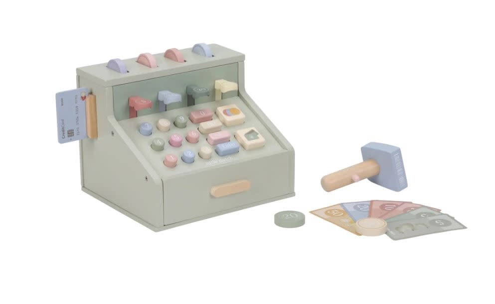 Houten kassa met scanner en pinpaslezer