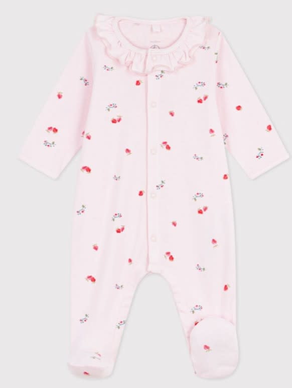 Katoenen babypyjama met bloemen/aardbeien - roze