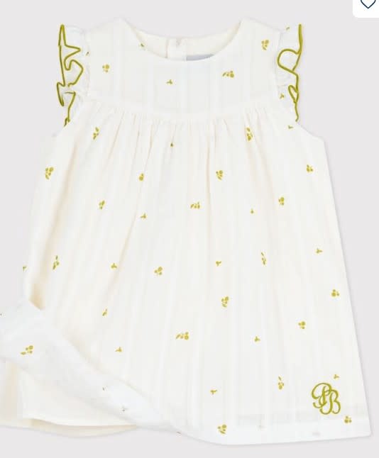 Katoenen jurkje zonder mouwen met bloemenprint voor baby's MARSHMALLOW/MOSS