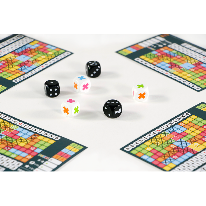 In dit spel kies je na jouw worp dobbelstenen uit om vakjes mee aan te kruisen. Het doel is om op een slimme manier kruisjes te zetten om gekleurde vlakken en/of kolommen te vullen. Hiermee oefen je ruimtelijk inzicht en patroonherkenning.