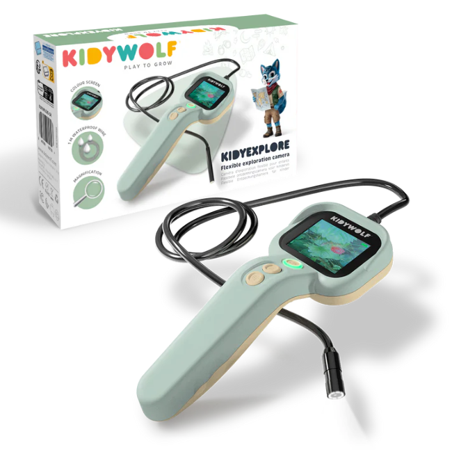 KIDYEXPLORE verandert elke hoek in een avontuurlijk terrein. Met zijn flexibele kabel van een meter, ledlampje, geïntegreerd scherm en camera aan het uiteinde van de kabel kunnen kinderen de natuur van dichtbij observeren, verborgen hoekjes verkennen of moeilijk bereikbare plekken inspecteren. Zonder wifi of app is het een eenvoudig, stimulerend en veilig observatie-instrument dat hun nieuwsgierigheid en ontdekkingsdrang prikkelt.
