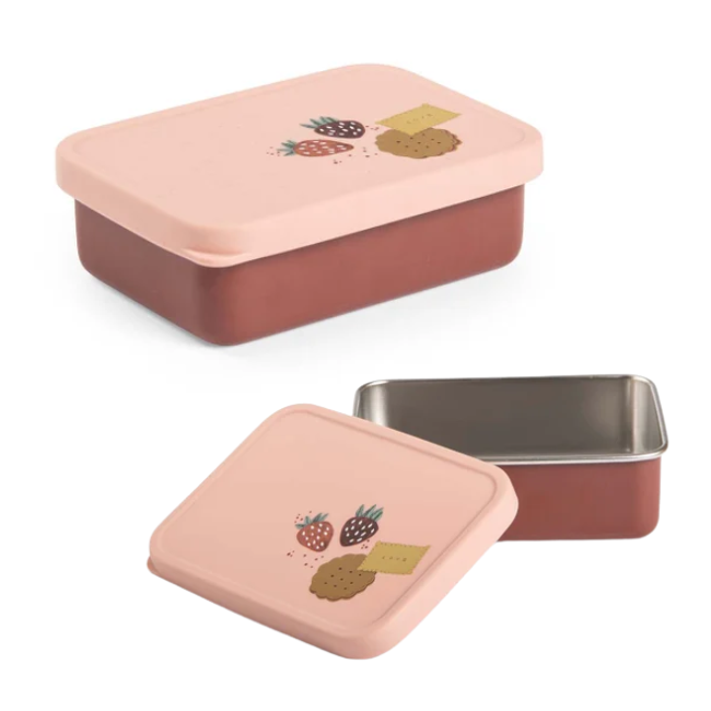 Een mooie "After the Rain" lunchbox van roestvrij staal met een siliconen deksel. Perfect luchtdicht, past hij gemakkelijk in de tas van peuters.