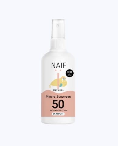 Naïf Minerale Zonnebrandspray SPF50 bevat geen ingrediënten zoals oxybenzone, octinoxate, octocrylene, avobenzone. Deze ingrediënten vermijden we liever. In plaats daarvan bevat de zonnebrand zinkoxide: een natuurlijk ingrediënt die een beschermde laag op de huid legt en daardoor zonnestralen weerkaatst.
