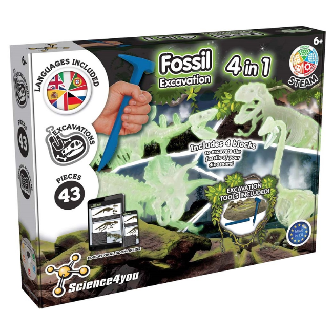 Science4you - Fossil Excavation 4 in 1 Glow in the Dark (+6j)