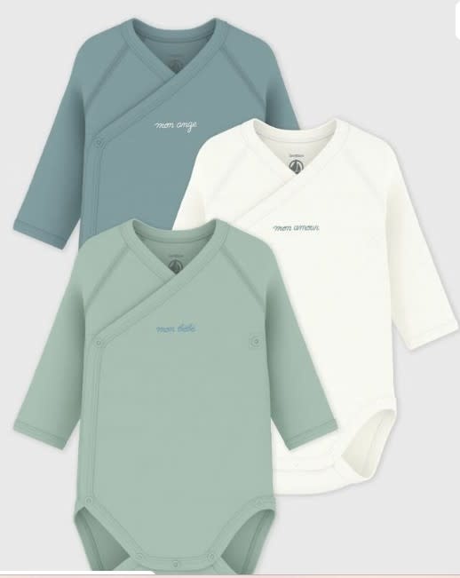 Set van katoenen babyrompertjes met lange mouwen en print Blauw/groen/wit