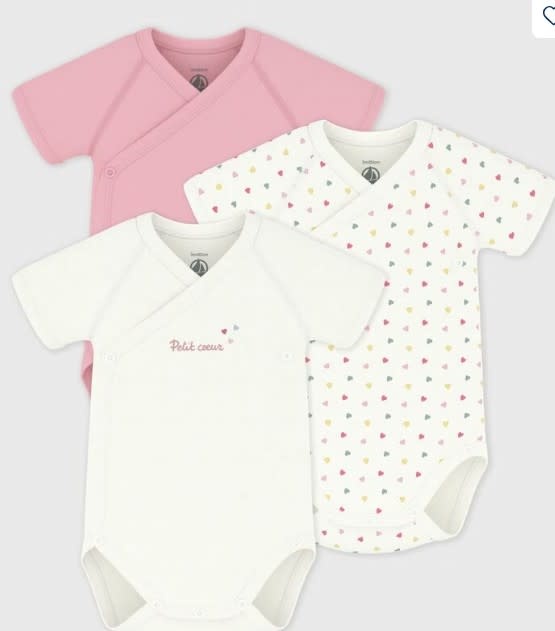 Set van katoenen babyrompertjes met print en korte mouwen - Gekleurde hartjes A0FYS